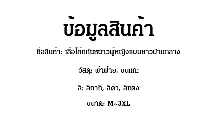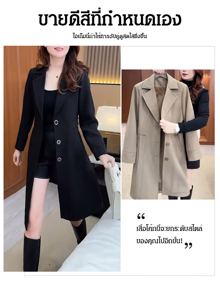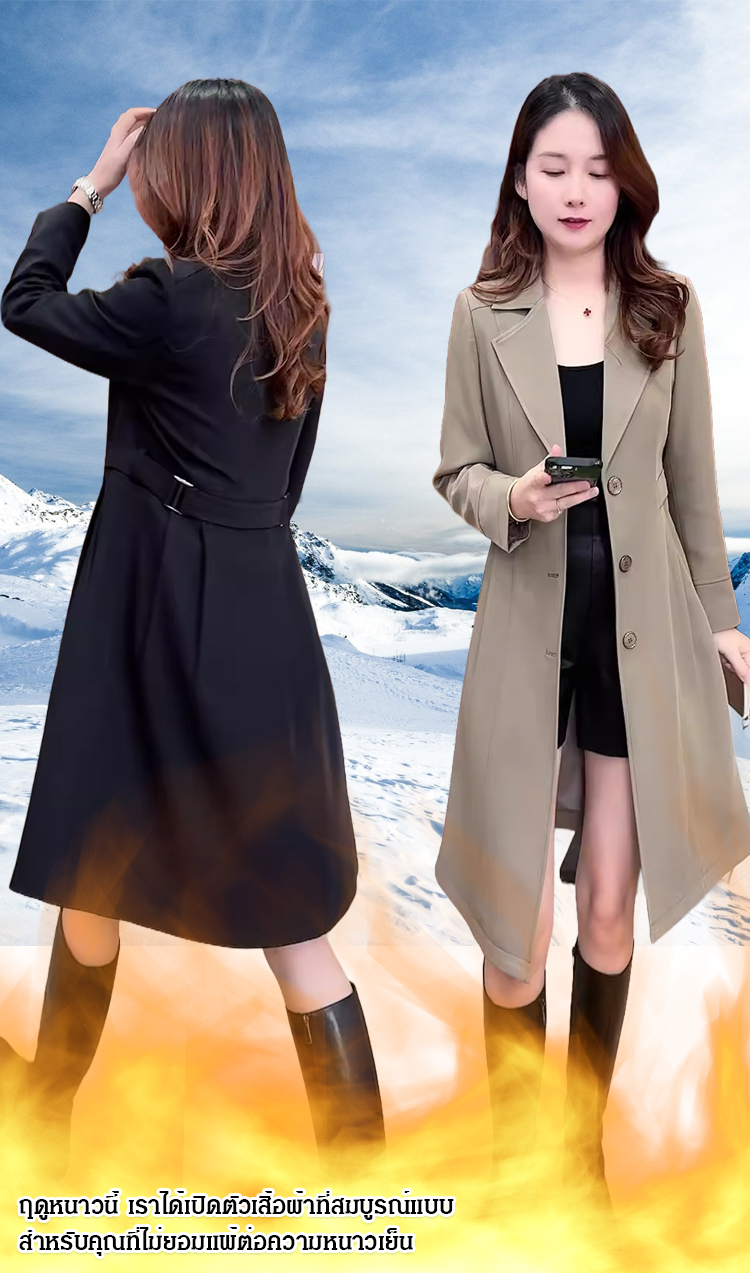 เสื้อโค้ทกันหนาวผู้หญิงแบบยาวปานกลาง