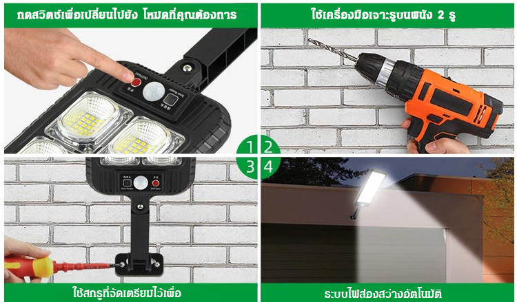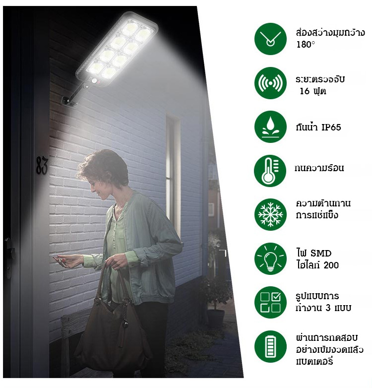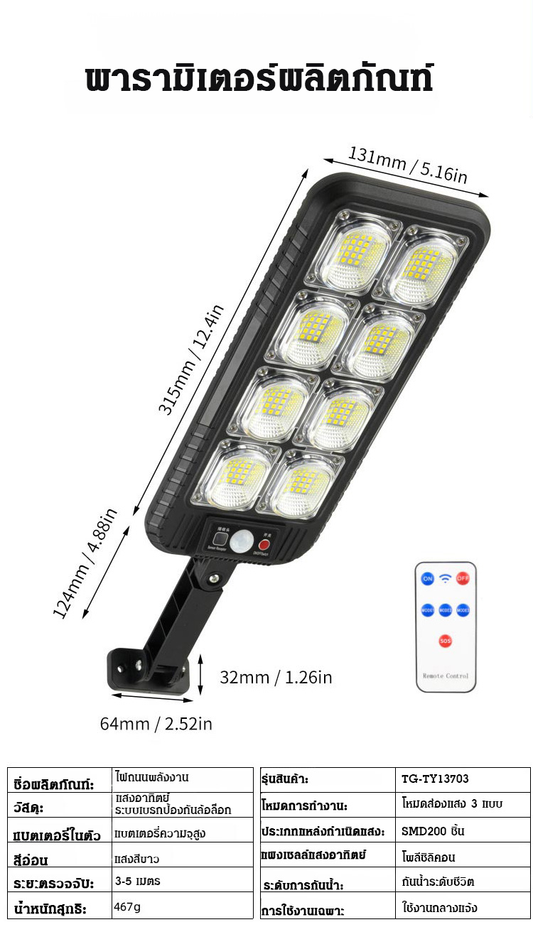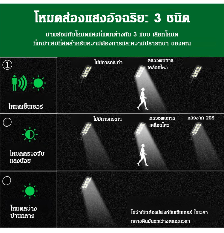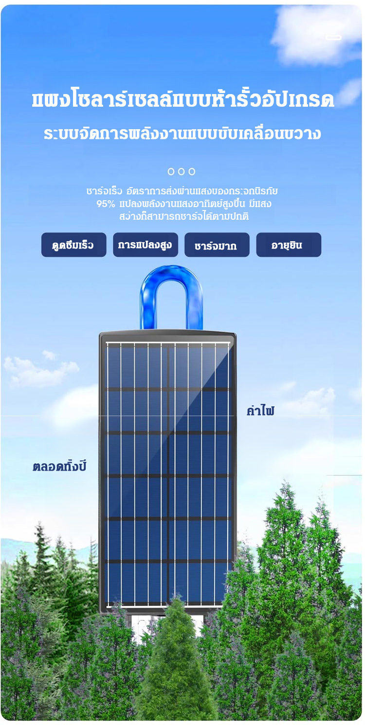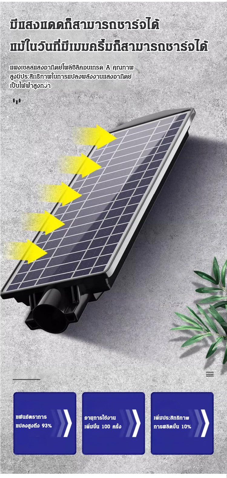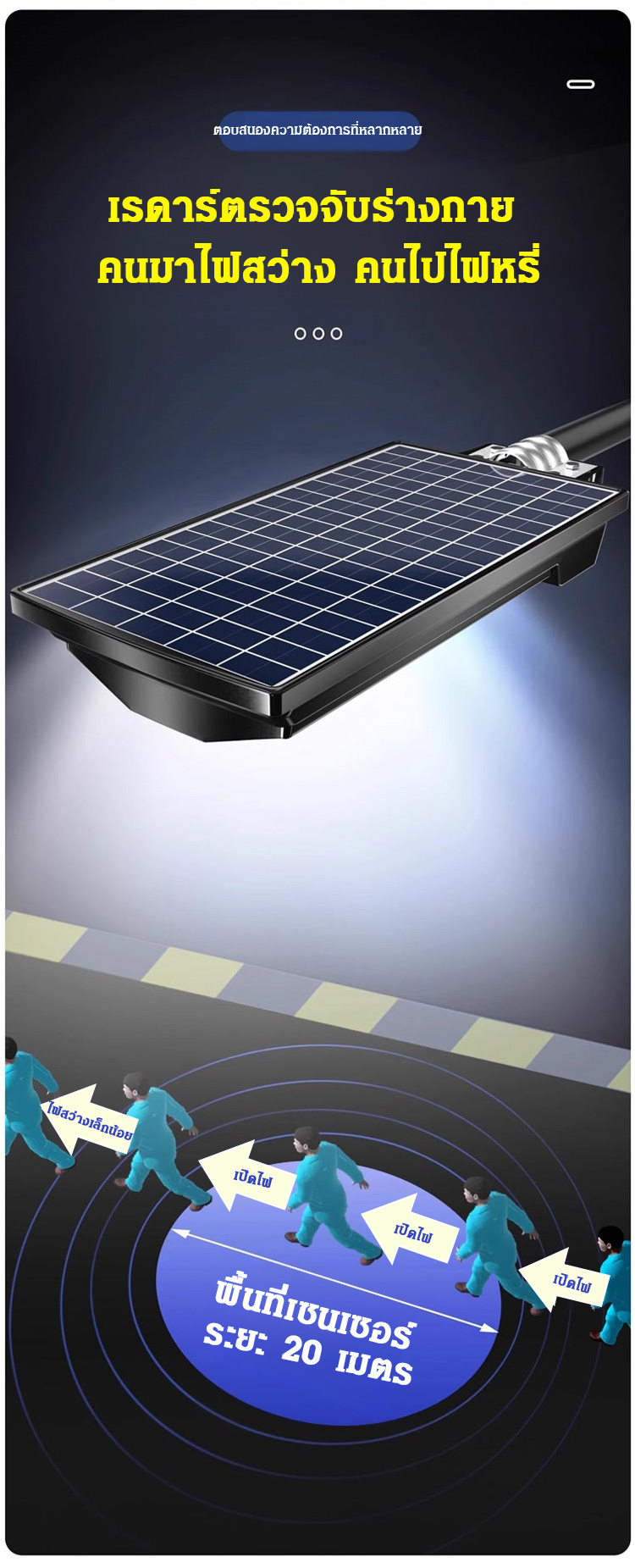 ไฟถนนพลังงานแสงอาทิตย์สว่าง 300 ตารางเมตร